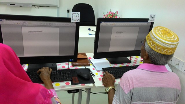 KELAS KEUSAHAWANAN MICROSOFT WORD (MEMBUAT SURAT RASMI) Tarikh: 25/08/2015 Masa: 9.30 pagi- 11.00pagi Kelas ini disertai oleh dua orang warga emas. Peserta yang menyertai kelas. Peserta sedang belajar cara-cara menggunakan microsoft word.