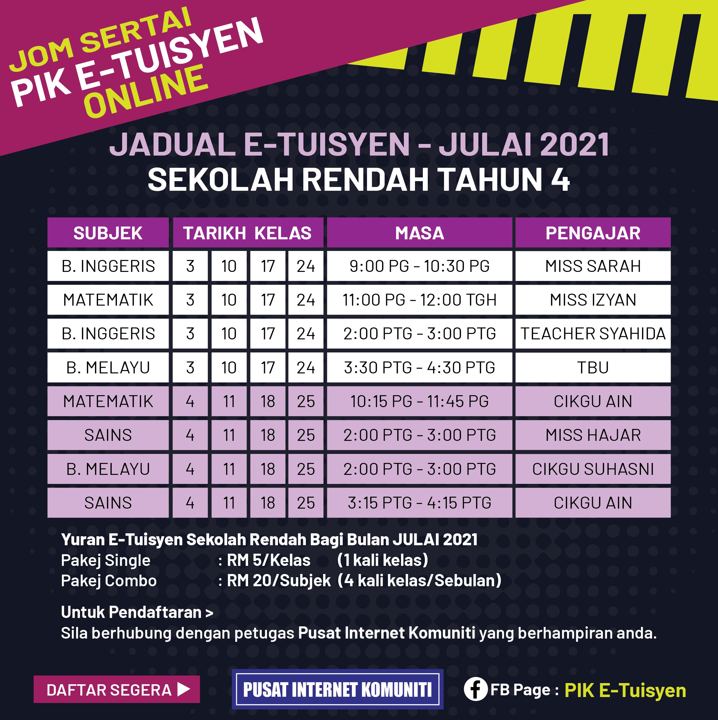 JADUAL E-TUISYEN OGOS 2021