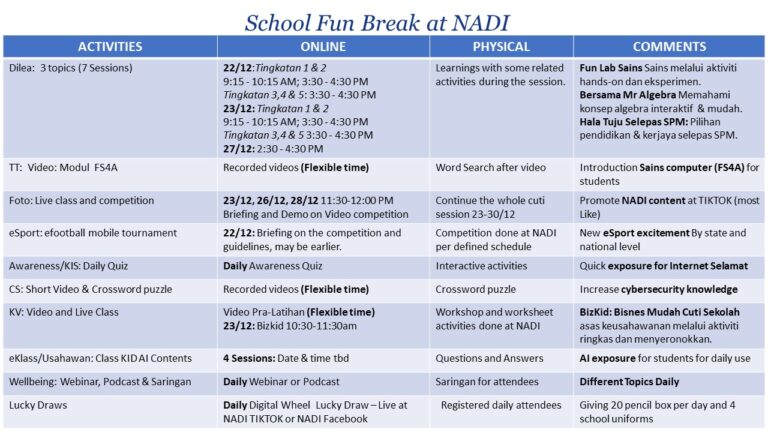 Jom isi cuti sekolah anda dengan aktiviti seronok, bermanfaat dan percuma di NADI KAMPUNG ALUR LIMBAT!